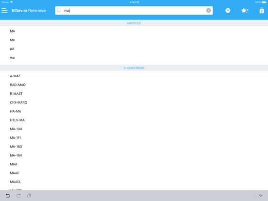 • Search autocomplete helps you find words quickly by displaying predictions as you type.