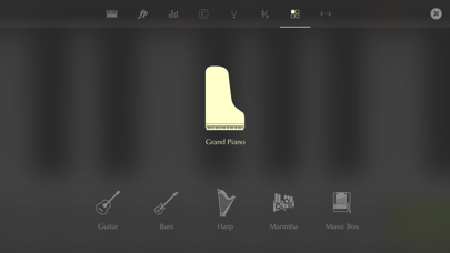 • Realistic instruments, including grand piano, guitar, bass, harp, marimba and music box.