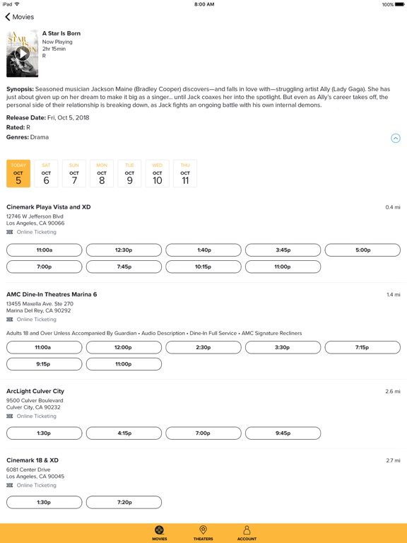 • Check out showtimes and choose one that works best for you