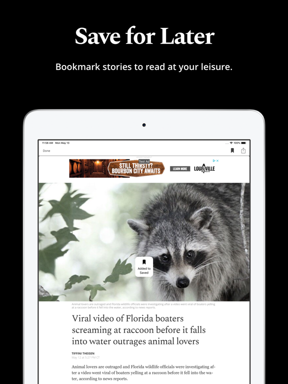 • Save must-read stories, photos and videos for when you have the time to enjoy them