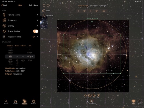 When you're ready to go even further, Luminos will be ready with you. If you're fortunate enough to have a computer-controllable telescope, then Luminos can command it for you to find objects quickly and easily. Detailed data on every object is easily available within Luminos, even without an Internet connection. Powerful planning tools help you make the most of your evenings by showing you exactly what will be visible tonight or any night in the future.