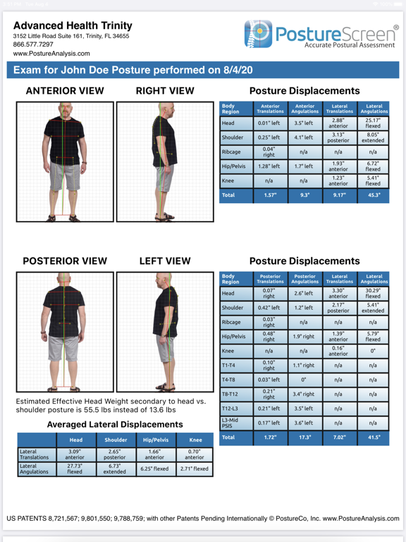 This easy to use HIPAA compliant application is made for Chiropractors, Physical and Massage Therapists, and Fitness Professionals who wish to objectively and quickly evaluate the posture, movement, and body composition of existing or prospective patients at a health/spinal screening or any patient/client encounter. PostureScreen with its’ upgrade modules, can accurately assess the status of patients/clients and be used for prescribing corrective exercises according to the screening results. The solution encompasses analysis of Posture analysis, Body Composition analysis (both 2D and 3D analysis available) and Movement Screens (such as SquatScreen and PushUp Screen) that drive proper quantifiable objective measurement and documentation with uniform assessments. Once the analysis and exercise selection is performed, the client will receive a secure email with links to their private exercise portal to view not only still images but streaming video of their corrective protocols. Findings from the assessments are generated as both objective reports in PDF format as well as annotated jpg images, both which can be uploaded into 3rd party management software and EHRs.