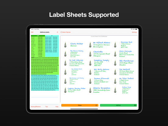 "I hate addressing my Christmas cards. This app made it very easy to make labels from my iPad. I don't have a printer that works with my iPad yet, so I really appreciated having the capability to send them as a PDF to my email address. The app is awesome..."