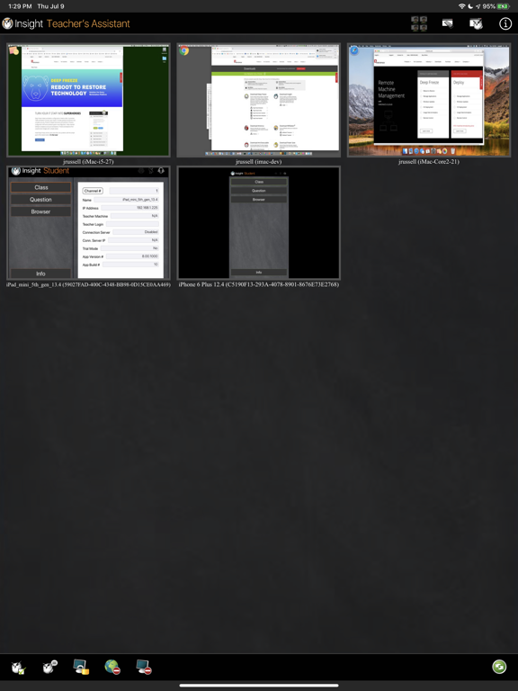 The Teacher’s Assistant will display re-sizable high color thumbnails of the student computers.