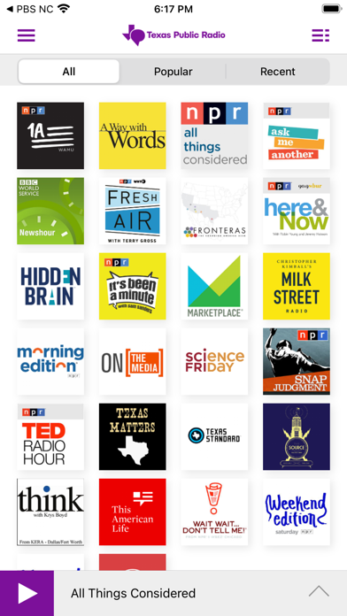 The Texas Public Radio App allows you to listen to Texas Public Radio live, pause and rewind the live audio, and view the program schedule for all the Texas Public Radio streams at once! You can explore On Demand content, search for stories, bookmark a story for later, and wake up to Texas Public Radio with the alarm clock!