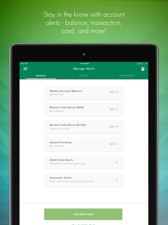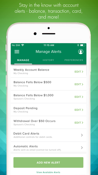 - Stay in the know with text or email alerts for balances, transactions, cards, and payments