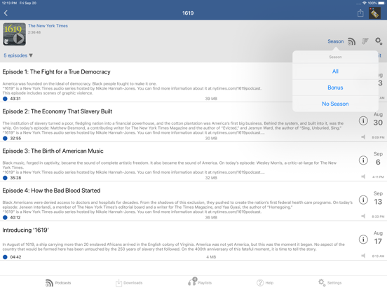 • Download episodes over WiFi or Cellular (on devices that have cellular).
