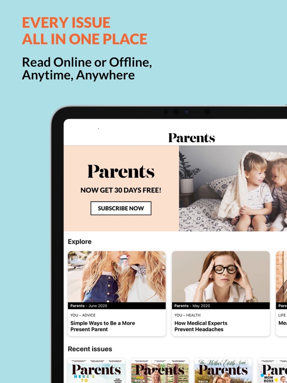 Download the app and receive a FREE ISSUE when you say yes to a monthly or annual subscription. Parents Magazine is published 12 times a year.