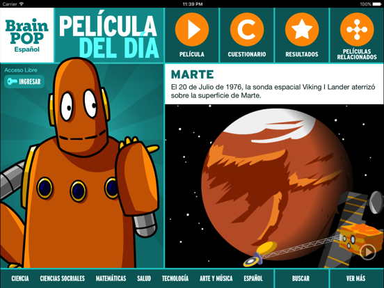 “Suscripción de Acceso Pleno a BrainPOP Español” – La Película del Día con su cuestionario, y acceso ilimitado a todas las películas y cuestionarios de BrainPOP Español (los suscriptores del sitio de BrainPOP Español pueden ingresar al app sin costo adicional).