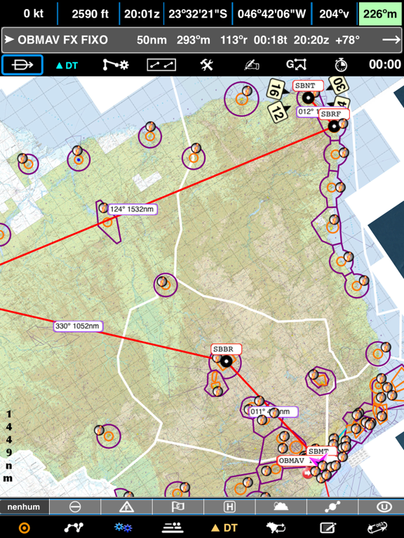Carregue as cartas dos aeródromos desejados para consulta em voo: ADC, VAC, SID e IAC. Na versão iPad inverta a cor destas cartas (negativo) e poderá, consultando a carta fazer facilmente goto ou incluir fixos de aproximação final ou saída na sua rota.