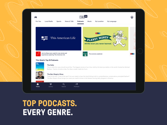 When you sign up for TuneIn Premium, our optional monthly subscription service, you also get:
