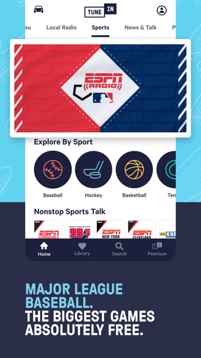 You can also stream live play-by-play of the biggest games from stations like ESPN Radio and talkSPORT, along with on-demand podcasts coverering your football, baseball, basketball and hockey obsession from every angle.