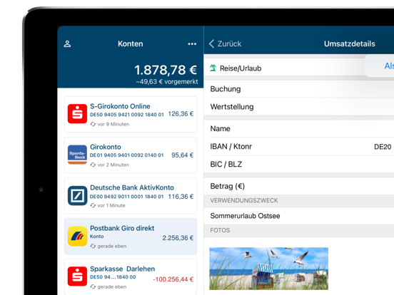 - Kein lästiges Abtippen von IBAN oder BIC: Mit der Fotoüberweisung Rechnungen abfotografieren und im vorausgefüllten Formular sofort in der App überweisen. Oder später am PC bzw. Mac (Komfortfunktion, möglich mit der StarMoney Flat)