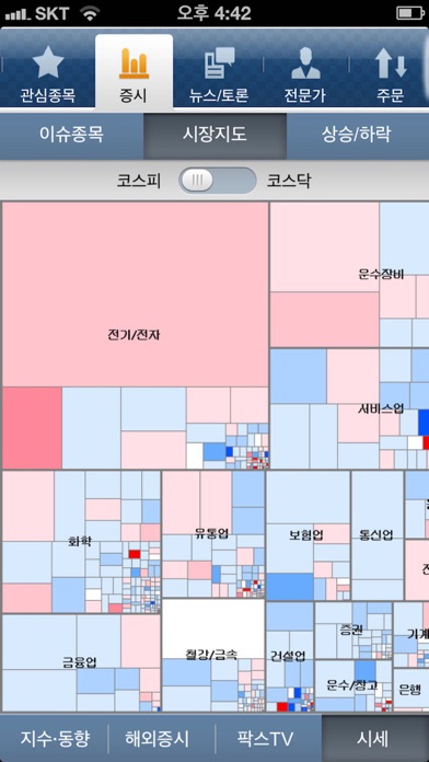 코스피/코스닥 시장지도로 오늘의 시장 등락을 한눈에 확인할 수 있습니다.