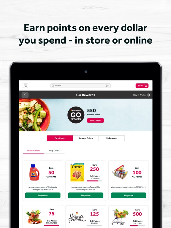 • Earn 1 Stop & Shop® Go Rewards™ point for every $1 spent online or in store