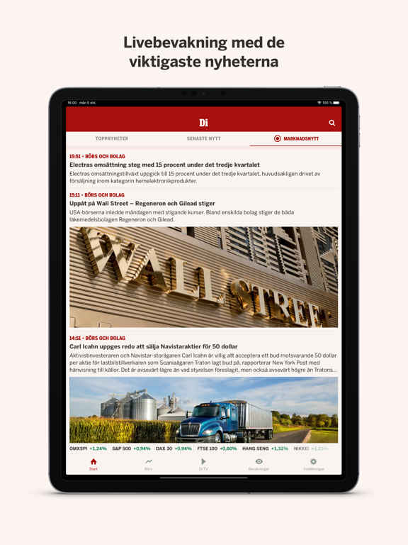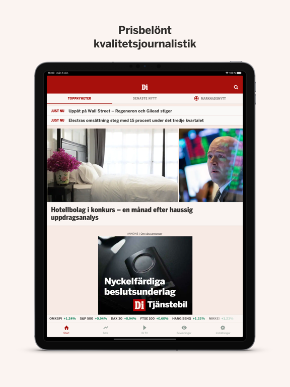 För att läsa de senaste affärsnyheterna från Di som en digital version av papperstidningen hänvisar vi till vår app "Di e-tidning" som du också hittar i AppStore. Där kan du välja att läsa nyheterna antingen som tidningssidor eller i artikelläge.