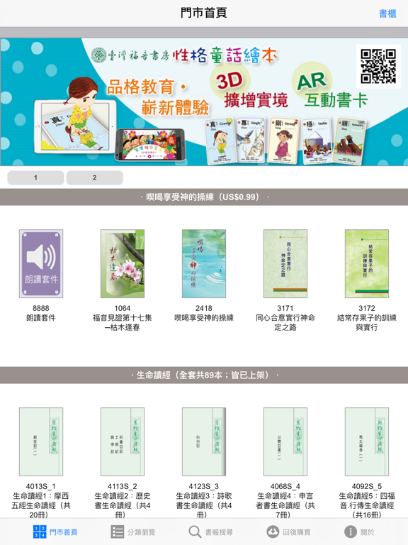 - 具有門市售書、分類瀏覽、書報搜尋等功能。