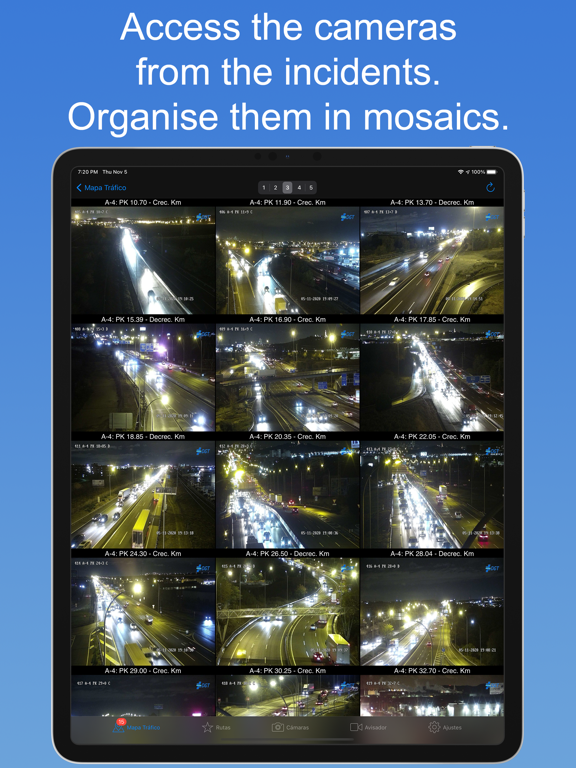 · Traffic cameras: compare official information with images from the cameras (if your community / town-hall has cameras which are not in Skip Traffic, write to us and we will try to add them to the app, most of the communities do not have their own traffic service, but their cameras can be found in the DGT section). Organise them in mosaics and favourites.