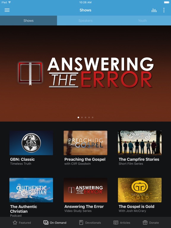 Welcome to the official Gospel Broadcasting Network application for your mobile device! Check out all kinds of content that interests you. After you’ve downloaded and enjoyed the content, you can share it with your friends via Twitter, Facebook, or email. For more information about GBN, please visit: http://www.gbntv.org The GBN app was developed with the Subsplash App Platform.