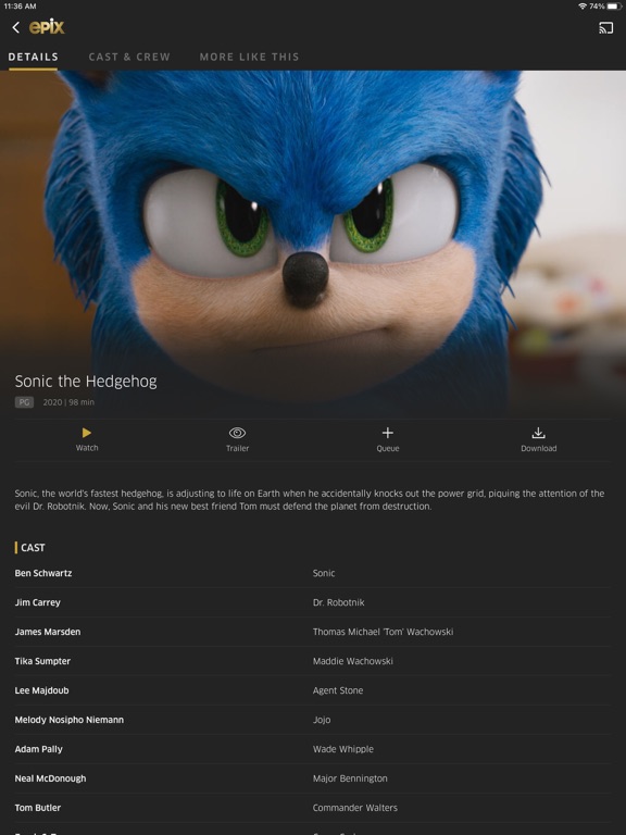 - EPIX Cast so you can stream from your mobile device, but watch on supported TV screens with a simple tap