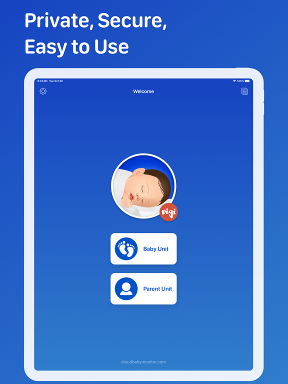 Use your iPhone, iPad, iPod touch or a Mac as a child unit, place it in your baby's room and enjoy live full screen video and clear audio on your second device working as a parent unit. Both devices will be connected automatically, without any configuration. All communication is secure, protected by industry standard encryption to make sure that only you have the access to your baby video stream.
