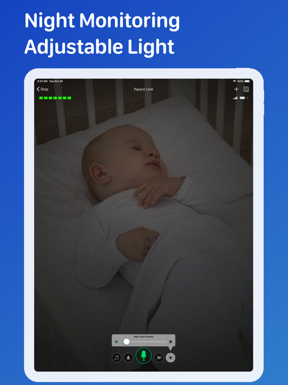 Use remotely controlled night light to watch your baby sleeping through the night. Brightness control allows you to adjust light intensity to get a nice picture and not disturb the baby.