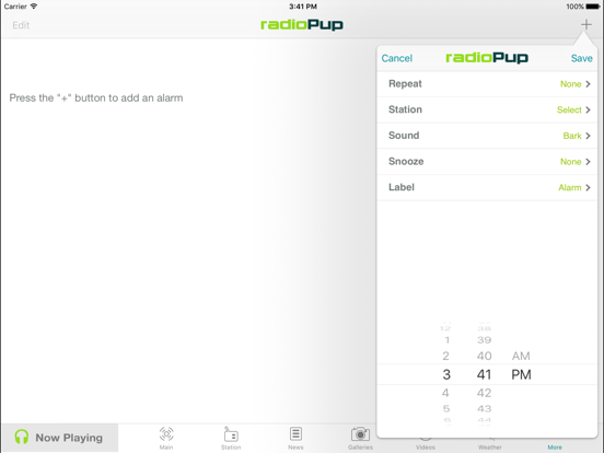 radioPup is a personalized radio app designed for the iPad, iPhone & iPod Touch featuring 300+ local radio stations streaming the best music and news available. Covering many genres including: Country, Classic Rock, Hip-Hop / R&B, Pop, Lite Sounds, Sports, News/Talk, Classic Hits, Rock and more. Browse through all of the available stations by location, genre or recently played or have the app recommend stations to you based on your location. Favorite the songs, stations, articles, photos that you like best and share them with friends via Facebook, Twitter, SMS or email. Have a favorite station or radio host that you want to wake up to every morning? Simply create a new alarm and the app will start up with your station of choice. You can also set a Sleep Timer so you can go to bed with your favorite station.