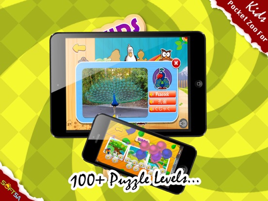 Choose from over 100 different puzzle pictures, all including funny sound effects.