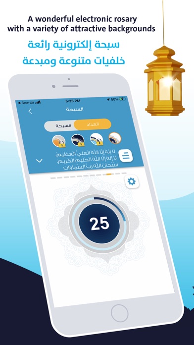 (السبحة) ليتيح لك الاختيار بين العداد والسبحة الإلكترونية.