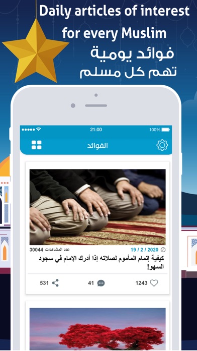 تطبيق (المصلي) يستخدمه أكثر من 17 مليون مسلم حول العالم، والذي يقدم لك الأذان ومواقيت الصلاة بكامل الدقة على حسب دولتك ومدينتك، وينبهك بأجمل أصوات الأذان في أوقات الصلاة وبحسب اختيارك، فهو خير رفيق بالشهر الكريم.