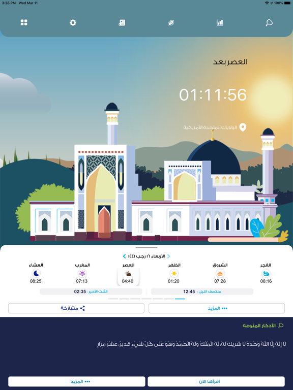(مواقيت الصلاة) تظهر بالشاشة الرئيسية، ومدعومة لأكثر من 250 ألف مدينة عالمية.