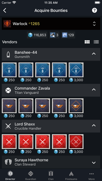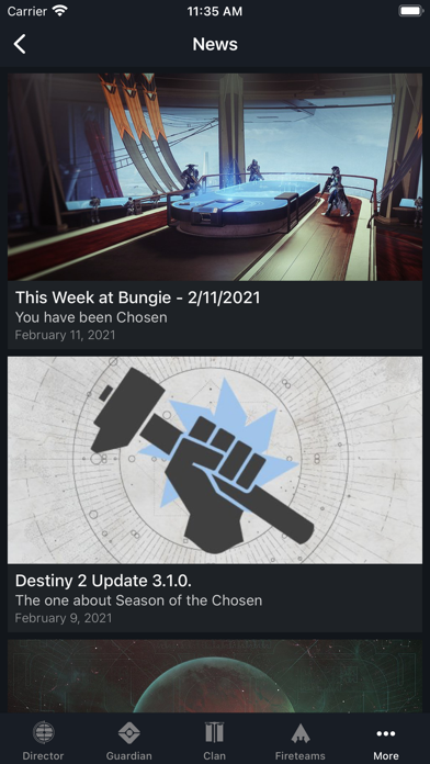 DIRECTOR - See the latest featured content. Track your progress towards bounties, quests, and challenges. Discover what events and activities are live in the game. See your current rank for seasonal rewards, claim rewards from the previous season, and inspect vendors for what they have available.