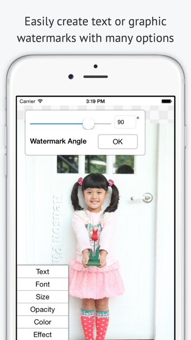 * Easily adjust the watermarks scale, opacity, font, color, size, position and angle.