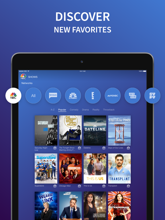 Watch TV and stream episodes of current NBC shows and classic hits, and live stream national and local news - anytime, anywhere! Watch series from more networks, including Bravo, E!, Oxygen, SYFY, USA, Telemundo and more! Stream timeless episodes of classic series and hit shows from beginning to end - all in one place.