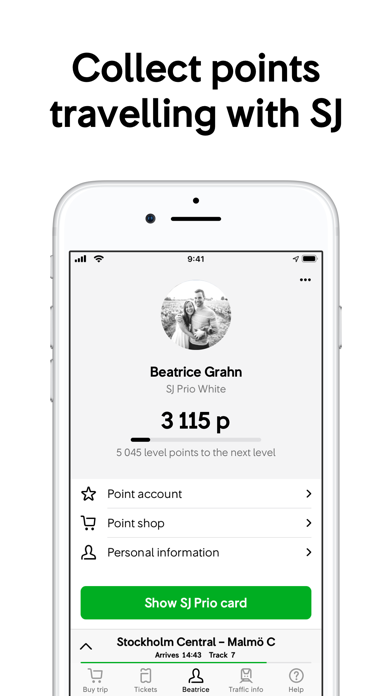 Buy train tickets, keep track of your journey and collect points when travelling with SJ.