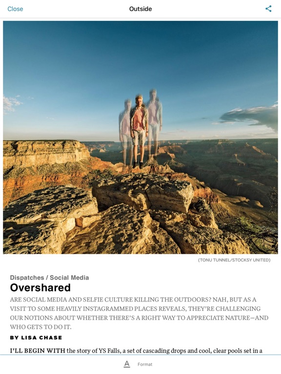 Outside+ Magazine delivers the award-winning stories and photography of Outside’s print editions, plus exclusive digital enhancements. Download the FREE Outside+ Magazine app, view FREE preview issues, then enter the in-app store to buy complete issues or sign up for an annual subscription. All purchased issues will be stored in your in-app Library.
