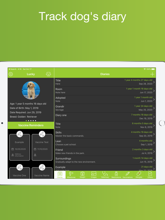 And this App supports multiple dogs, if you have two dogs or more, you can create their own files and store their personal information in this app.