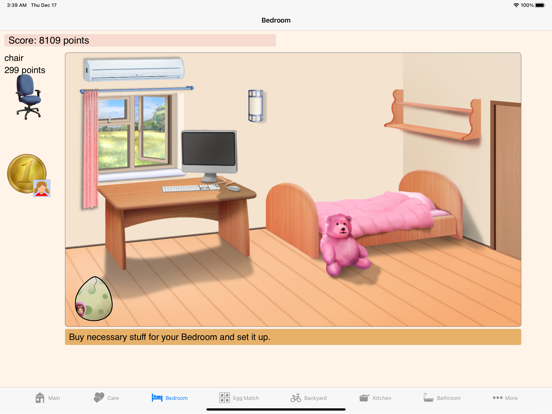 The goal of the game - in exchange for earned points purchase all available items at all available locations: Bedroom, Kitchen, Family Room, Backyard, Bathroom. And purchase all the toys.