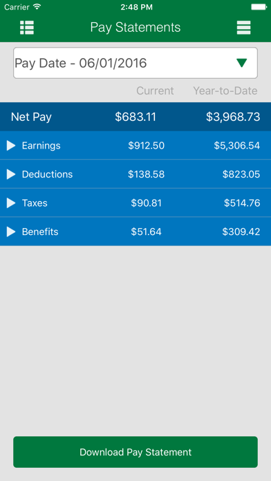 GreenEmployee Mobile allows employees who use GreenEmployee.com to easily view their pay history on their iPhone. Additionally, you may upload expense receipts, HR documents, clock in and out of your timesheet, and request time off if your company has these features enabled.