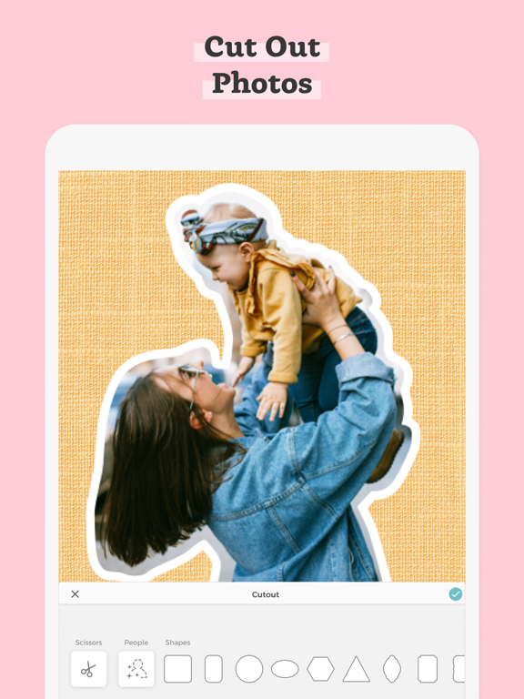 - Cut-Out - Snip your photos by tracing shapes with your finger, or use auto cutout for people or pets!
