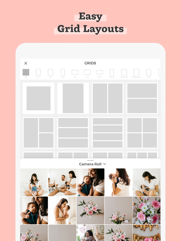 - Grids - Instant layouts to quickly arrange photos from your album.