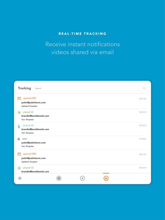 * Get email open, link click, and video play alerts within the app, as well as push notifications