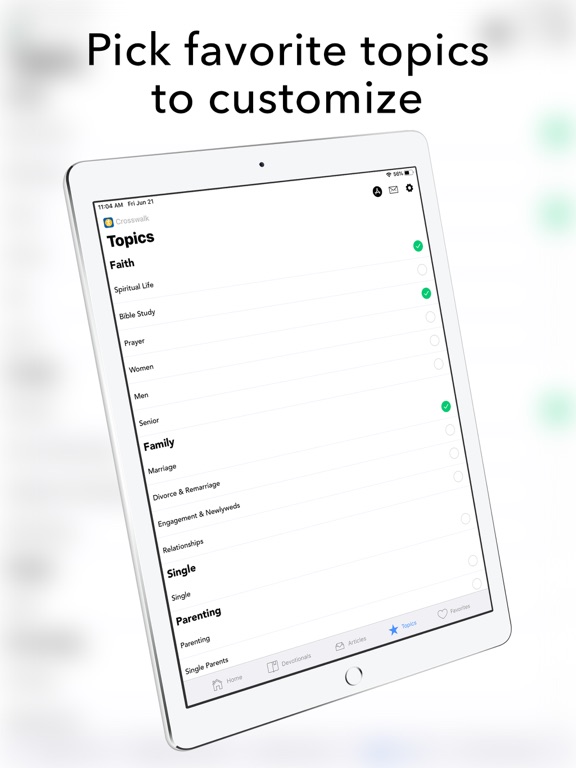 The Crosswalk.com app allows YOU to customize the content you consume! It's quick and easy to set your home screen with the topics you want to read about and to mark as favorites the articles you want to save and read again later.