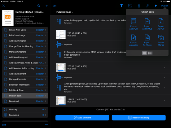 Creative Book Builder is a powerful, flexible, and professional ebook generation tool. No matter you create book from scratch or existing content, no matter your content is simple or complex, CBB enables you to build your own content in an efficient way.
