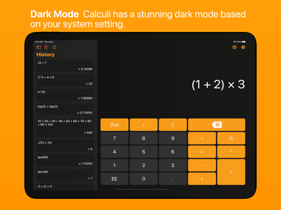Calculi adapts for all of the latest iOS devices. Even better, multitasking on the iPad is supported in all orientations. Multi-window support is enabled on iPadOS so you can have Calculi wherever you need it. For power users, light and dark modes are available.