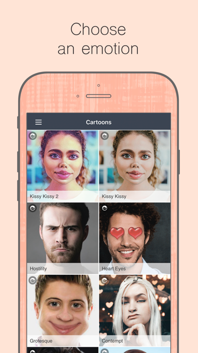 Cartoonized caricature from your selfie photo is guaranteed to WOW your friends! Imitate any emotion or make a fun face morph, all in seconds. Then share an animated video and get lots of likes.