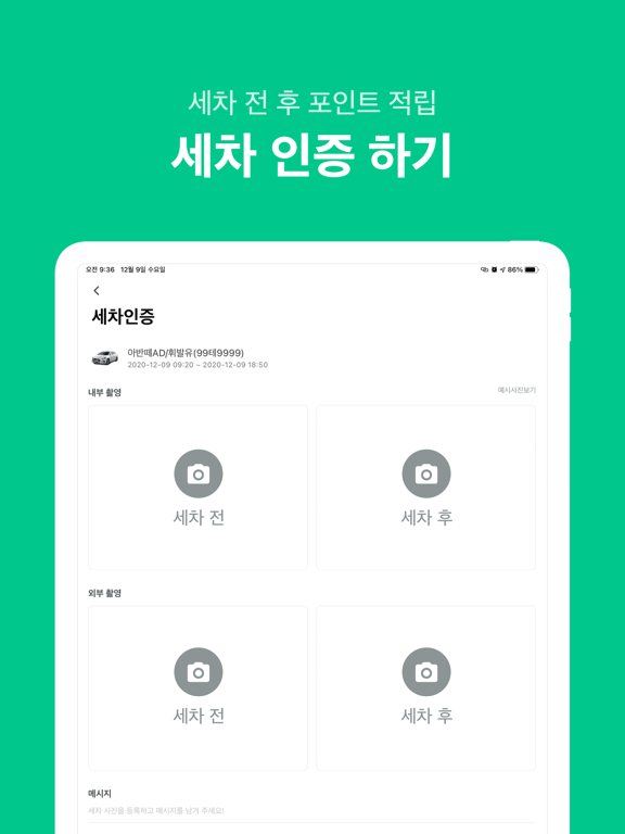 - 카메라: 면허증 인식, 차량상태 확인, 그린댓글 작성 등 사진 촬영