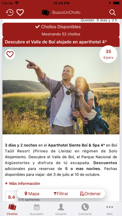 + ¡Novedad! CHOLLOS EXCLUSIVOS para usuarios registrados compradores. Si Ya has hecho una reserva con nosotros, regístrate en la app como usuario con el mismo e-mail y podrás acceder a chollos privados exclusivos.