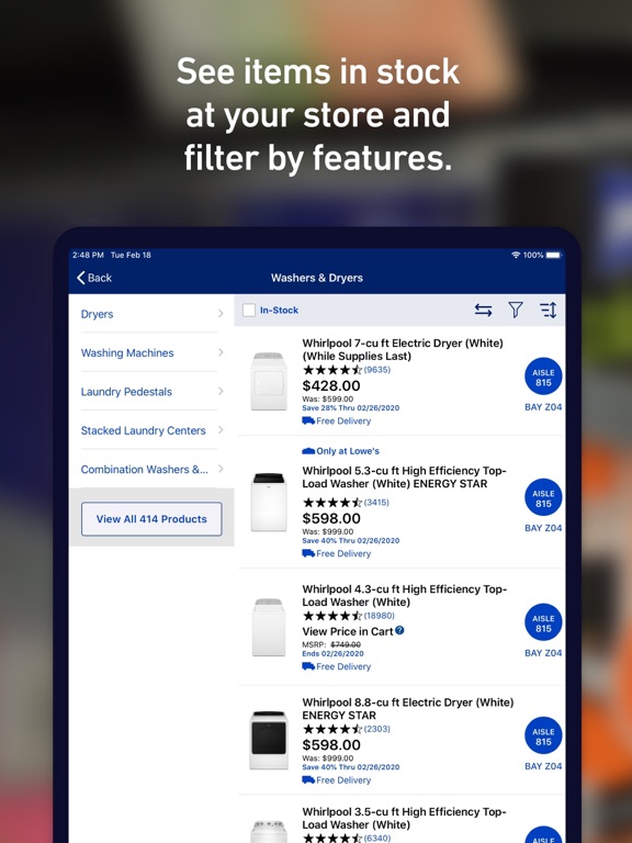 We have clearly marked aisle and bay information right on the list page, so you know right where to go when you’re in a store. Plus, check the “in-stock” box to only view items that are available for pick up. If it’s not there, no problem. Check other stores with just a tap.
