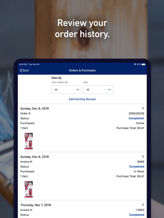 We make paper receipts a thing of the past. Search order history for specific items you’ve purchased and access entire transactions right on your phone.